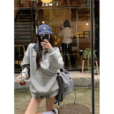 2024 秋冬 トレンド トップス長袖 かわいいK-POPTロング黑白レディース韓国風ロゴ衣装カラールーズゆったりカジュアルハーフおしゃれサイズスリーブシルエットファッション系サイドシャツフット春 | OPEN-korea