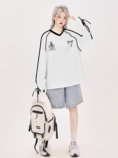 2024 秋冬 トレンド トップス 長袖 かわいいTシャツレディース韓国風ロゴロングルーズネックゆったりカジュアルおしゃれサイズスリーブシルエットファッション系サイド 衣装シャツフットスウエット春 | OPEN-korea
