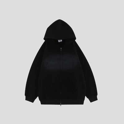 3色 BF風今年 秋冬 韓国 かわいい レディース フード付きアウターフーディー黑ブルゾン長袖シルエット加工 ユニセックス トップスカジュアルファッション系サイズお出かけフル丈トラック高校生通学大学生 | OPEN-korea