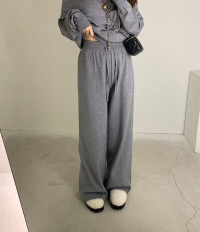2024秋冬セットアップ トップス ニット長袖 ワンショルダー ロングパンツ ワイド ストレート ゆったり 秋 白 黒 おしゃれ かわいい 韓国ファッション レディース お出かけ | OPEN-korea
