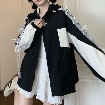 2024 秋冬アウター パーカー フード付き チャック 長袖 細見え 秋 黒 ブラック おしゃれ かわいい キュート 甘め 韓国系ファッション ストリートレディース お出かけトラック | OPEN-korea