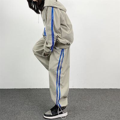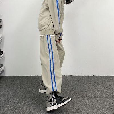 2024 春秋 2点セット ユニセックス トップス お出かけ 羽織り ショート丈 セットアップ ルーズ サイド ボトムス ストレート系冬 ゆったり サイズワイドシルエット リラックストラック | OPEN-korea