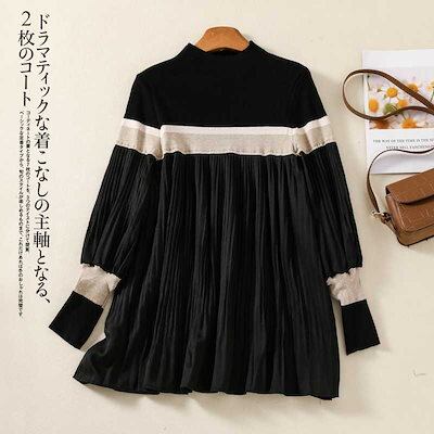 「ファットガール」 2024秋冬新品 ロングニット Aライン 大きいサイズ 体型カバー レディース プリーツ シワ セーター ニット メガ割
