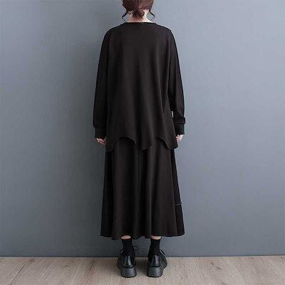 「ファットガール」 秋冬 上下セット トップス+スカート 大きいサイズ おしゃれ レディース セットアップ 体型カバー