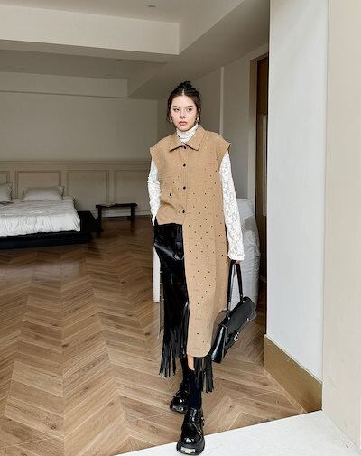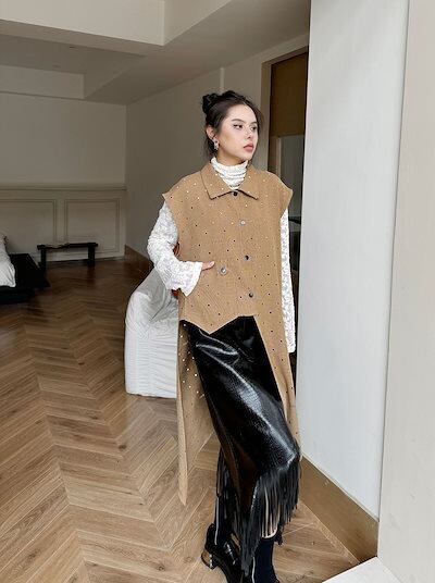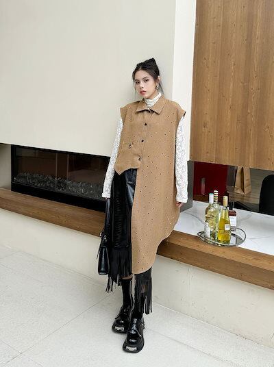 【J.Fashion】 2024秋冬新品 袖なし ロングベスト 不規則裾 レディース ベスト スカートも店で購入可能です〜 メガ割