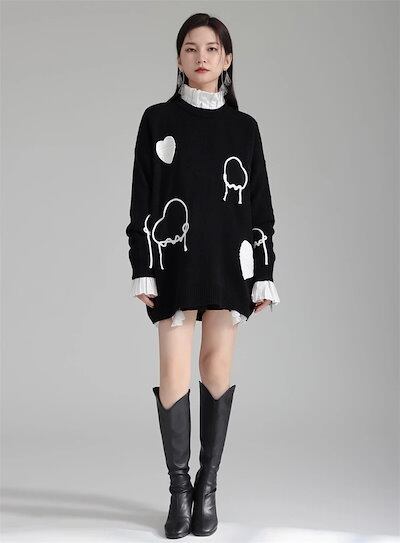 【J.Fashion】 秋冬 ニット ロング丈 セーター 体型カバー ゆったり レディース ニット ベーシック 関連商品は店で購入可能 メガ割