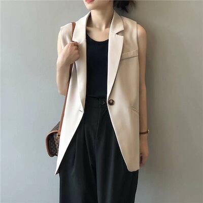 ジレ レディース 春夏 50代 ジレベスト ベスト 前開き テーラードベスト 秋冬 ロング キレイめ 前開き ロングベスト 上品 スーツベスト Vネック シンプル ノースリーブ 無地 通勤 きれいめ | OPEN-korea