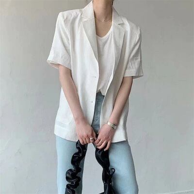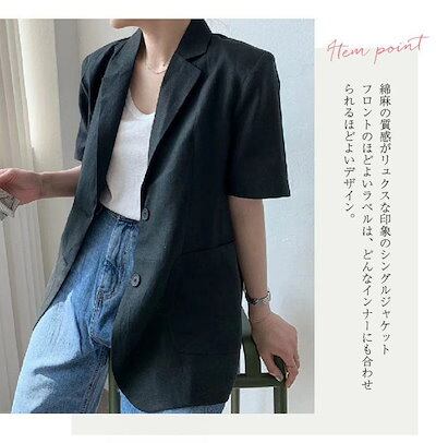 綿麻風 テーラードジャケット レディース テーラード ジャケット 半袖 ライトアウター フォーマル スーツ カジュアル 夏 トップス オフィス 通勤 OL ビジネス 薄手 羽織 はおり サマージャケッ | OPEN-korea