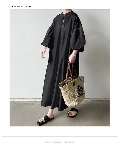 【2枚購入で 2oo円OFF! 】春のワンピース シンプル ランタン袖 ワンピース 気質高級感 カジュアル ロングワンピース 着痩せ 大きいサイズ ワンピース
