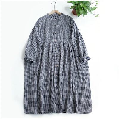 【2枚購入で 2oo円OFF! 】春 ゆったり大きいサイズ ロングワンピース 日系 チェック ワンピース レディース 韓国ファッション体型カバー 着痩せ 長袖 ワンピ20代 30代 40代 50代母の | OPEN-korea