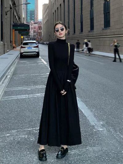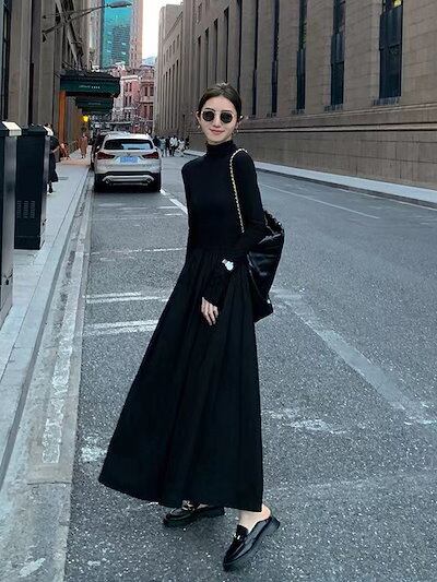 【2枚購入で 2oo円OFF! 】高級感 ハイネック ワンピース レディース 2024 春 新作 レトロ 気質 インナー ワンピース 春ワンピース 長袖 着痩せロングワンピース | OPEN-korea