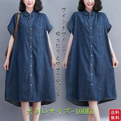 【2枚購入で 4oo円OFF! 】大きいサイズ 100KG デニムロングワンピース デニムワンピース 七分袖 きれいめ レディース 春 夏 秋 ロング デニムワンピ サロペット マキシ丈 Aライン | OPEN-korea