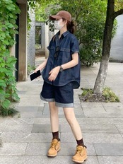 2024夏 デニム セットアップ 韓国スタイル ゆったり レディース 夏服 半袖 ショットパンツ 二点セット夏 着痩せ ルームウェア 韓国ファッション ホームウェア