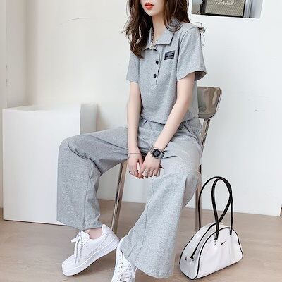 2024夏 カジュアル 運動 ワイドパンツ 二点セット夏 気質 着痩せ セットアップ レディース 夏服 ブラック グレー ワイドパンツロングズボン ルームウェア 韓国ファッション ホームウェア | OPEN-korea