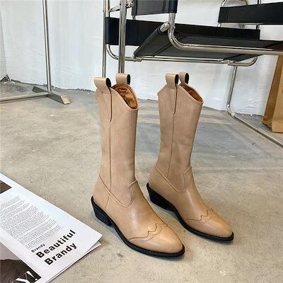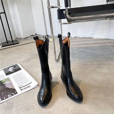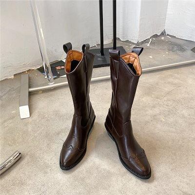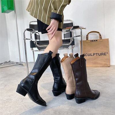 ブーツロングブーツレディースロング丈ブーツローヒール脚ブーツ合皮通学脚太ヒールハイヒールカジュアルブラウン黒