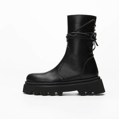 厚底ブーツ レディース 秋冬新作 ブーツ ミッドカーフブーツ レディース ファッション デザイン マーティン・ブーツ クロスオーバー レースアップ バイカーブーツ