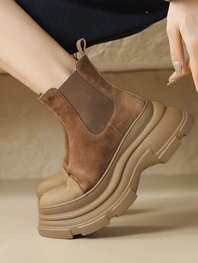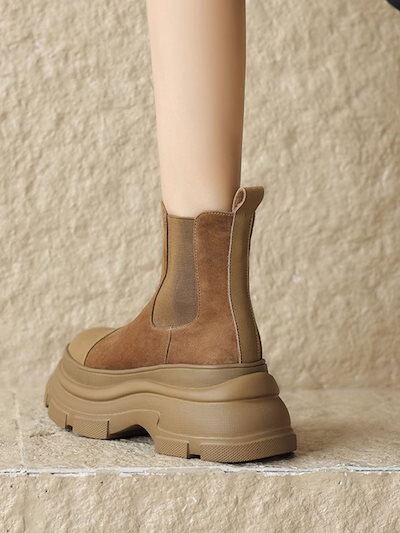 メガ割 ショートブーツ 厚底 ロングブーツが復活! 韓国ファッション 厚底シューズ マーチンブーツ2024年新作チェルシーブーツマドレーヌ底ショートブーツレディース 韓国