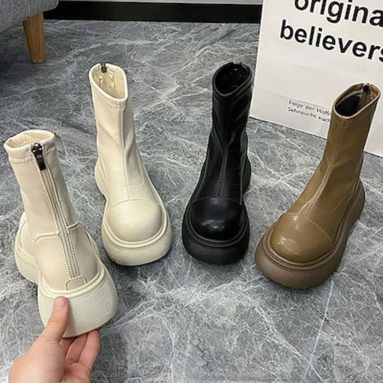 メガ割 ショートブーツ 厚底 ロングブーツが復活! ヒールパンプス シューズブーツ レディース スタイルアップ!ヒールパンプス リヤジップマーティンブーツ 秋