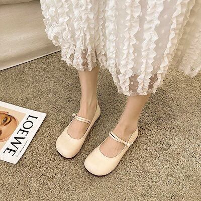 レディース 新しい 春秋 ラウンドトゥ 百掛け メアリージェーン シューズ かわいい オシャレ フラットシューズ