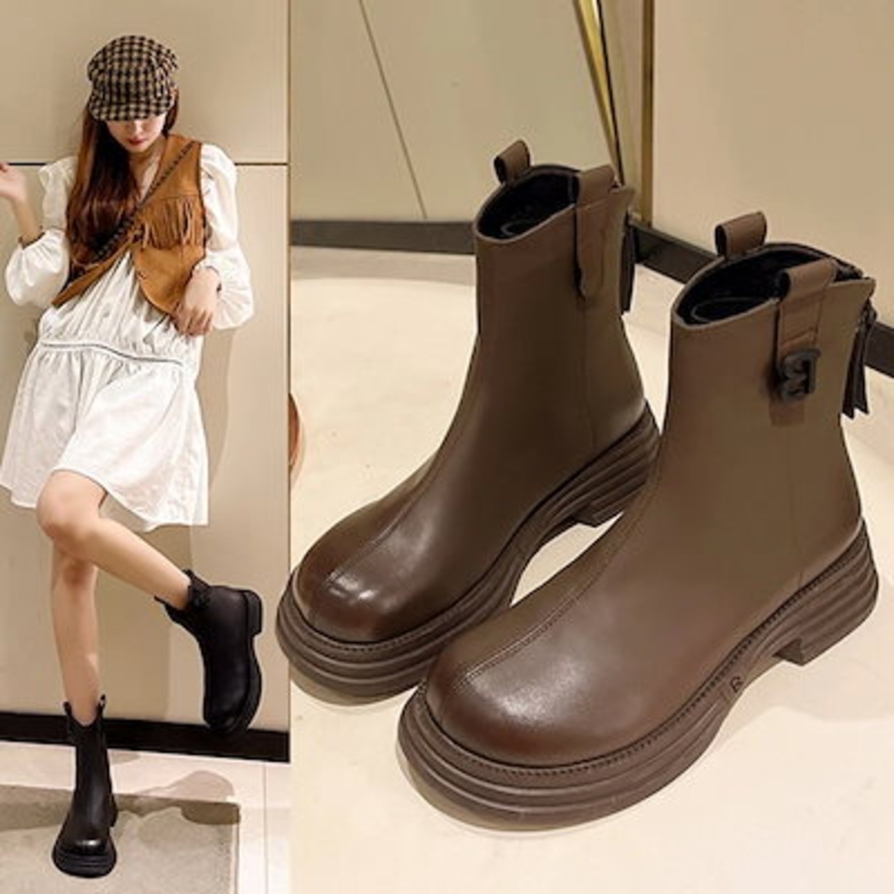 マーディンブーツ ショットブーツ レディース 2024秋冬 新作 レトロ 厚底靴 弾力 身長アップ 靴子 福袋
