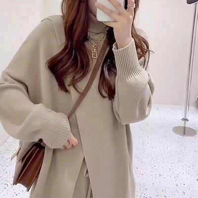 秋冬 新作 おしゃれ 気質 レディースセットアップ ニット アウター 二点セット 上下セット セーター ワイドパンツ セットアップ 通勤 シンプル 福袋