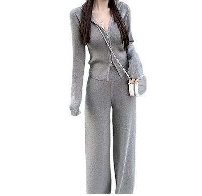 セットアップ ニット パンツ レディース 秋冬 セットアップ 長袖 パフスリーブ ブラック きれいめ