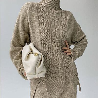 上下2枚セットニットワンピース セットアップ ニット パンツ レディース 秋冬 セットアップ 長袖 パフスリーブ ブラック きれいめ 厚手 ゆったり 大きいサイズ マタニティ | OPEN-korea