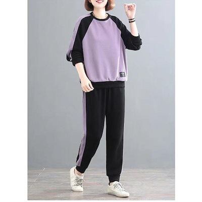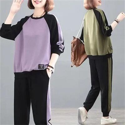 上下セット レディース セットアップ 配色 長袖 トレーナー ロングパンツ スウェットパンツ おしゃれ ボトムス カジュアル