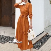 ロング丈ワンピース セレモニースーツ レディース ママ プリーツ 母親 フォーマル 入学式ワンピース スリム シンプル 入園式 長袖