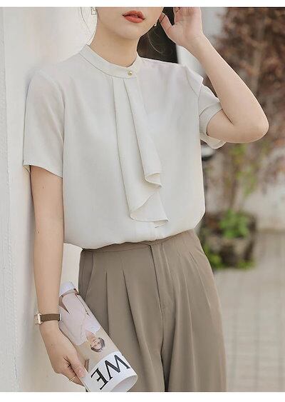 ブラウス ボウタイ レディース 半袖 スカーフタイブラウス 無地 シャツブラウス フォーマル セレモニー キレイめ トップス スーツインナー オフィス 通勤 仕事 OL おしゃれ 大人可愛い ゆった | OPEN-korea