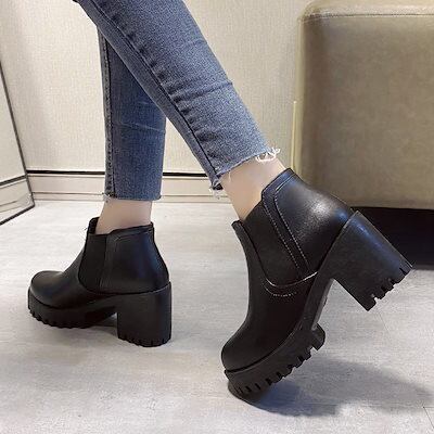 秋冬定番 厚底 ショートブーツ シンプル カジュアル ブラック ショートブーツ ファッション 可愛い 厚いヒール ショートブーツ