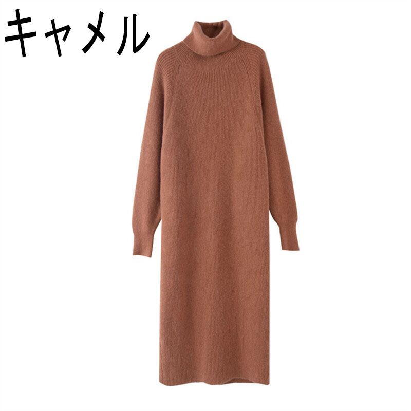 ニットワンピース セータードレス オーバーザニースリム ハイネックプルオーバー 長袖