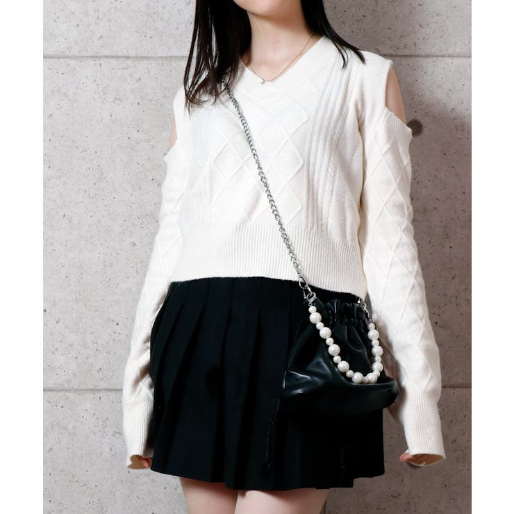 【日本倉庫即納】ケーブル編み肩カットアウトニット 韓国ファッション