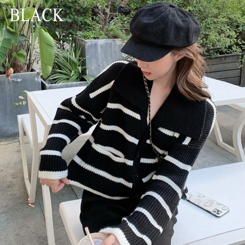 ニットカーディガン コート ジャケット 長袖 ボーダー柄