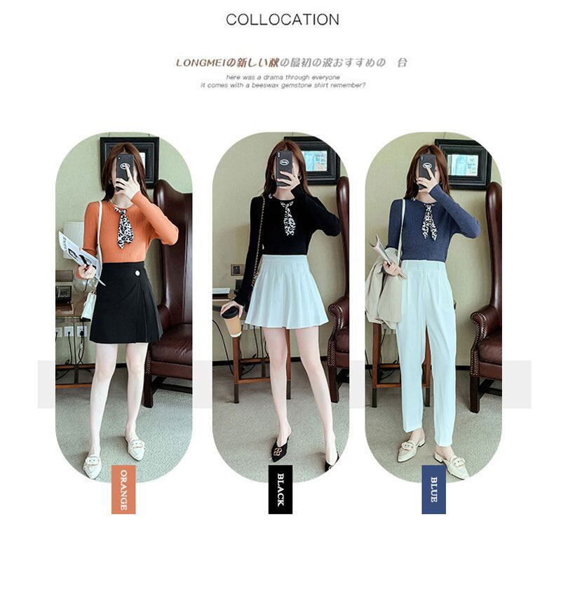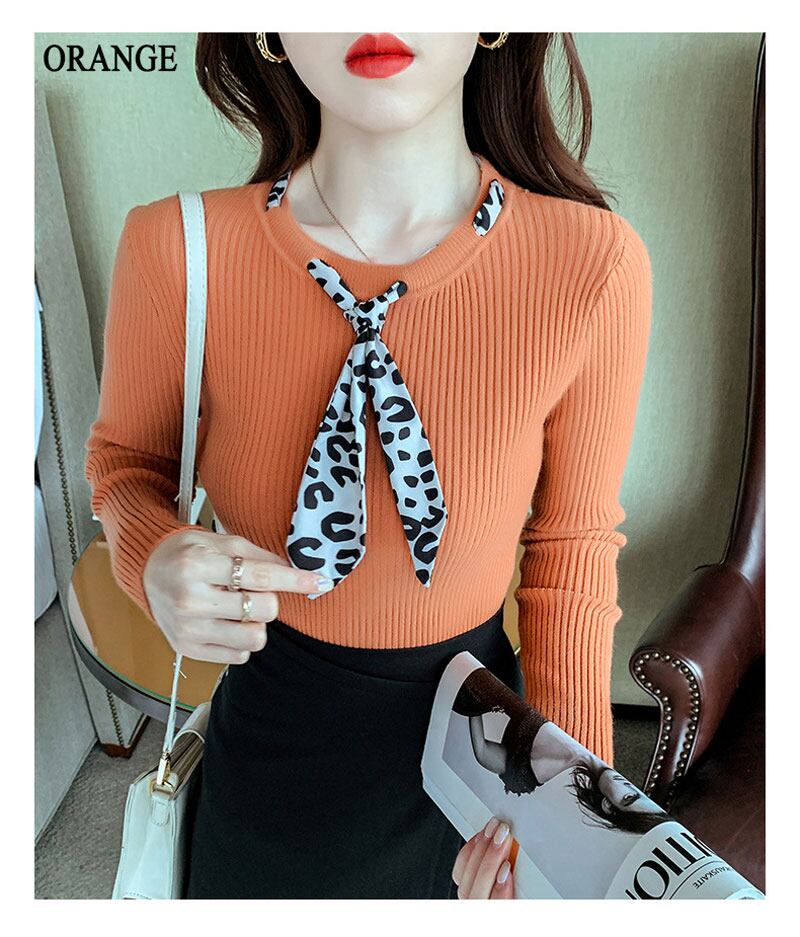 ニットセーター ヒョウ柄 シルクスカーフ ラウンドネック 長袖 オールマッチ