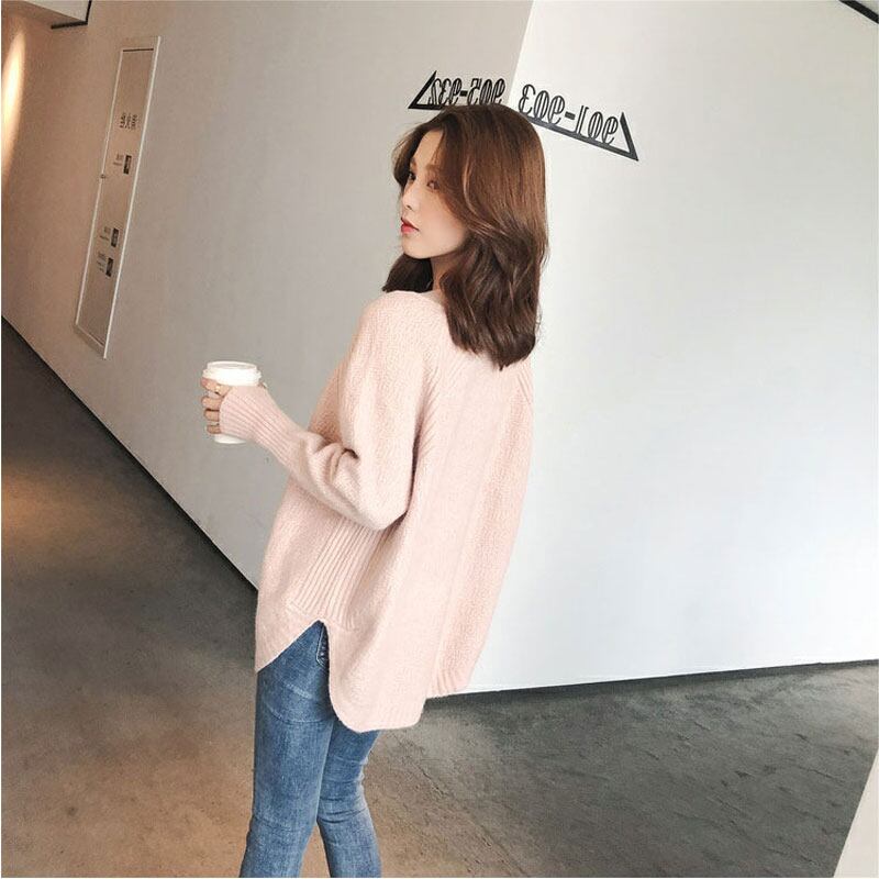 ニットブラウス セーター Vネック プルオーバートップ 長袖 無地