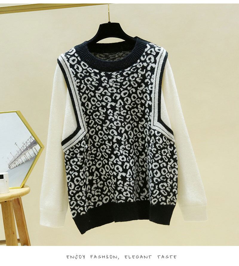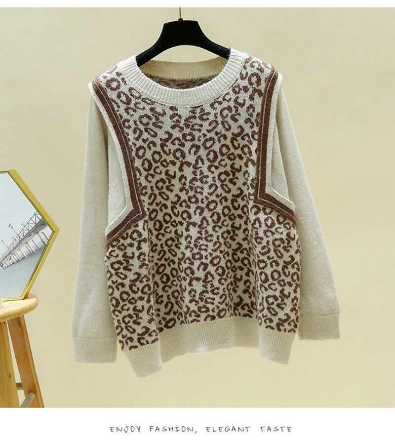 ニットブラウス セーター ヒョウ柄 ラウンドネック 長袖