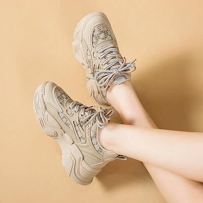 ダッドスニーカー厚底スニーカーレディースダッドシューズ韓国ダッドスニーカーヒール5cmカジュアルシューズスポーツシューズ厚底靴スニーカーレディースローカット脚身長アップ足長疲れにくい歩きやすい軽量オシ | OPEN-korea