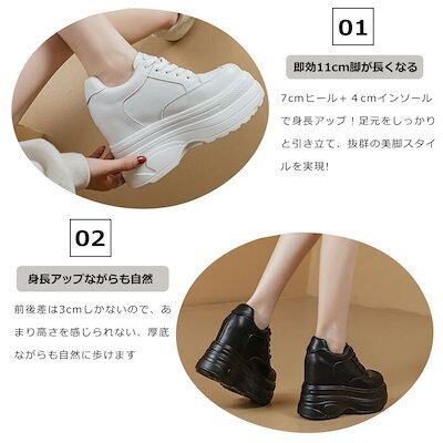 厚底スニーカー 11cm 身長up レディース インヒールスニーカー ウォーキングシューズ ヒールアップ 厚底靴 ダイエットスニーカー レザー カジュアル 黒 白 履きやすい シンプル 無地 | OPEN-korea
