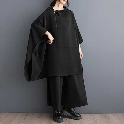 「ファットガール」 2024秋冬新品 マント風 体型カバーチュニック ブラウス ワンピース風 トップス 大きいサイズ レディース パーカー メガ割