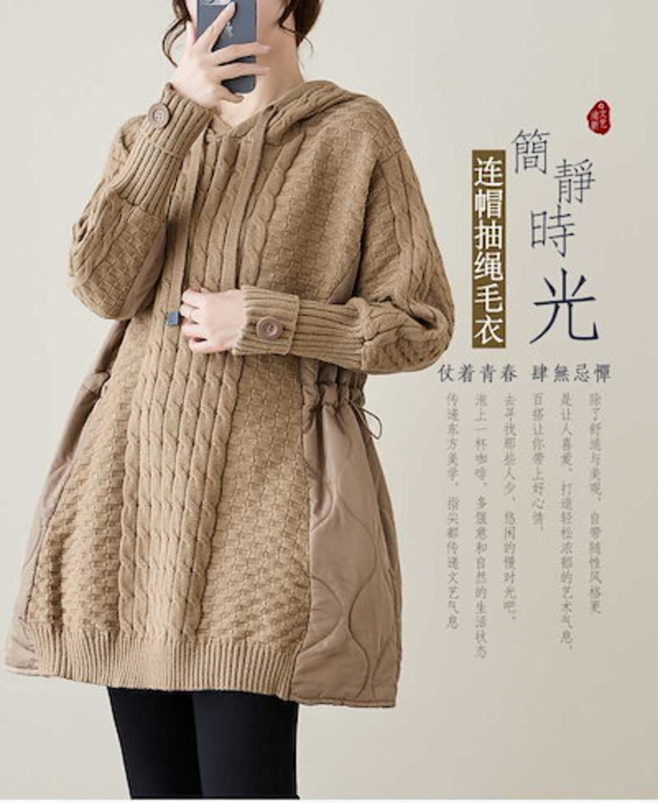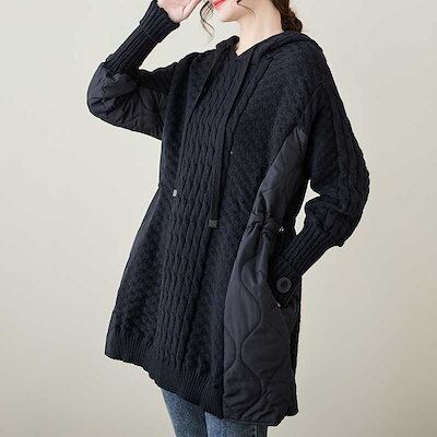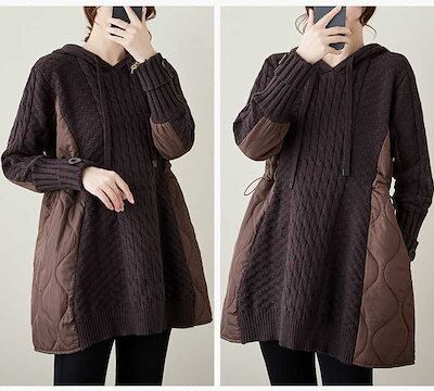 「ファットガール」 2024秋冬新品 ロングニット ドッキング ニットパーカー 大きいサイズ 体型ーカバー レディース セーター メガ割