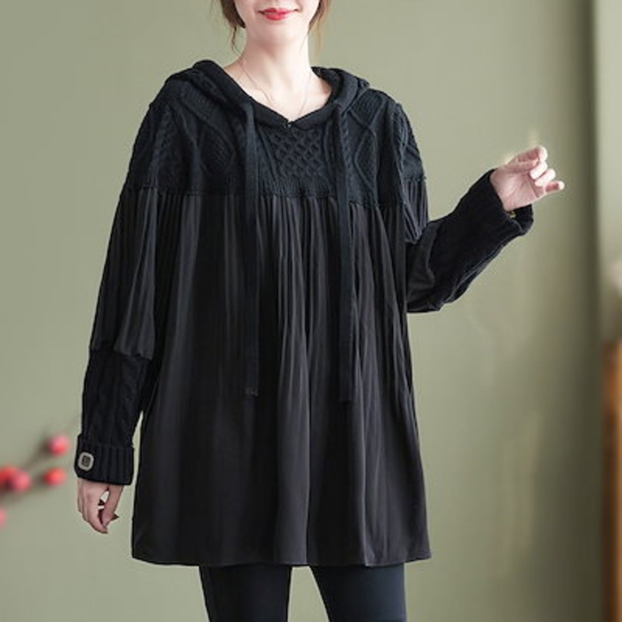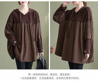 「ファットガール」 2024秋冬新品 ドッキングニット ロングニット 大きいサイズ 体型ーカバー レディース セーター メガ割