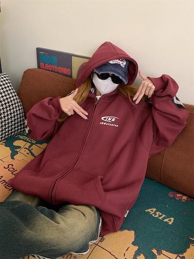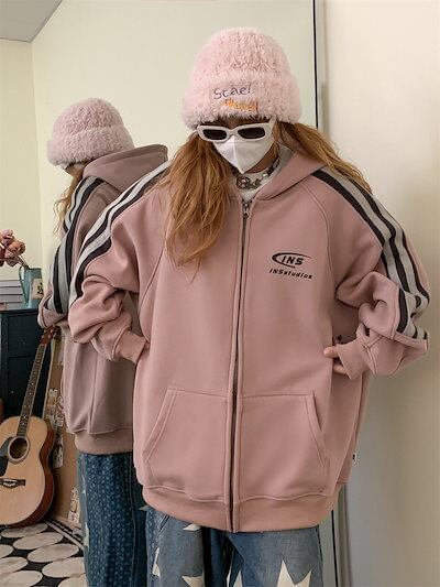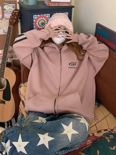 2024 秋 韓国 かわいい レディース フード付き アウター ブルゾン お出かけ 長袖セクシーシルエットトップスサイド冬カジュアルファッション系サイズお出かけフル丈トラック | OPEN-korea