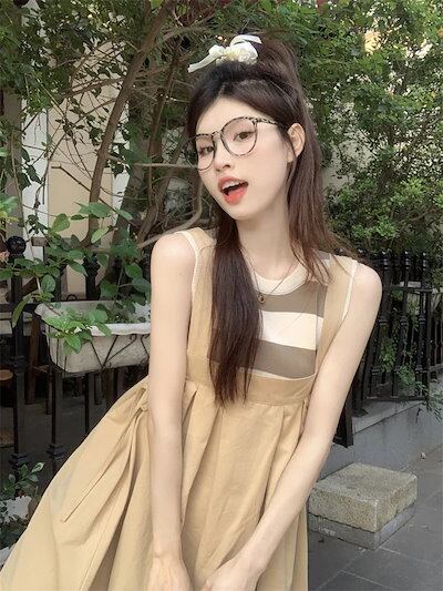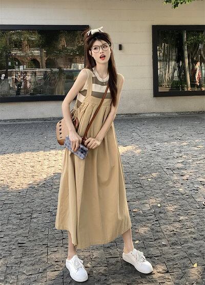 冬アウター セットアップ レディース 2点セット 上下セット ノースリーブ ボーダー トップス フレア ジャンパースカート ストラップドレス ミモレ丈 夏 可愛い ガーリー カジュアル お出かけ 韓国 | OPEN-korea