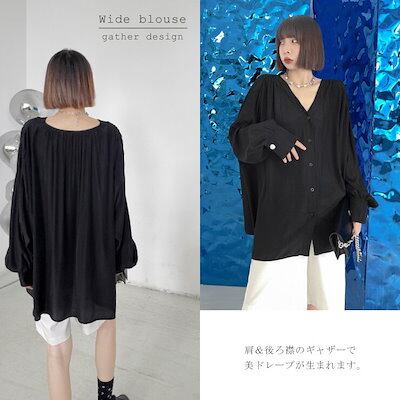 大きいサイズレディースオーバーシャツ前あきブラウスVネック長袖LL3L4L5L6Lブラックホワイト 冬でもブラウス 今っぽシアーシャツ
