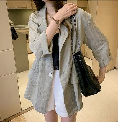 テーラードジャケット レディース 切り替え フォーマル ジャケット スーツ ストライプ コート トップス 着回し力 紫外線対策 UVカット 着痩せ 体型カバー シンプル カジュアル おしゃれ 春夏