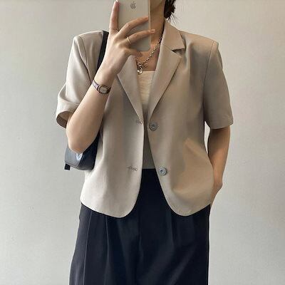 ジャケット ショート丈 レディース テーラードジャケット 夏 カジュアル 半袖 カジュアルスーツ 薄手 コート ショート サマースーツ オフィス 洗える ライトアウター 羽織 通気性 サマージャケット | OPEN-korea