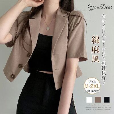 ジャケット レディース スーツ 夏 サマーコート テーラード 半袖 ブレザー スーツジャケット レディース 春夏 ショートスーツ 綿麻風 オフィス カジュアル フォーマル 麻調 リネン ネンタッチ 春 | OPEN-korea