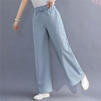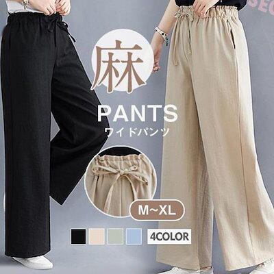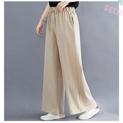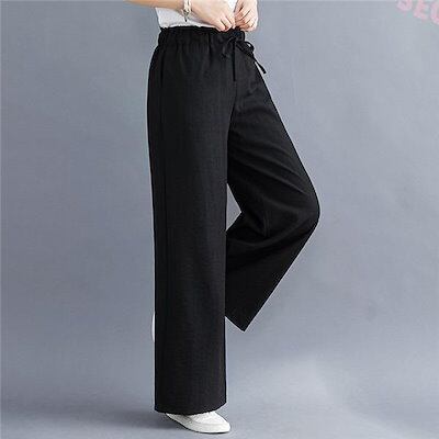 新品(タイムセール)ワイドパンツ レディース リネン風 綿 コットン ゆったり 洗える 体型カバー ロング丈 ナチュラル ボ カジュアル 大きいサイズ 無地