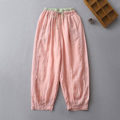 2023 夏 伸縮性のあるウエスト パッチワーク 綿麻 ゆったり 快適性 九分丈パンツ ハーレムパンツ カジュアルパンツ レディース